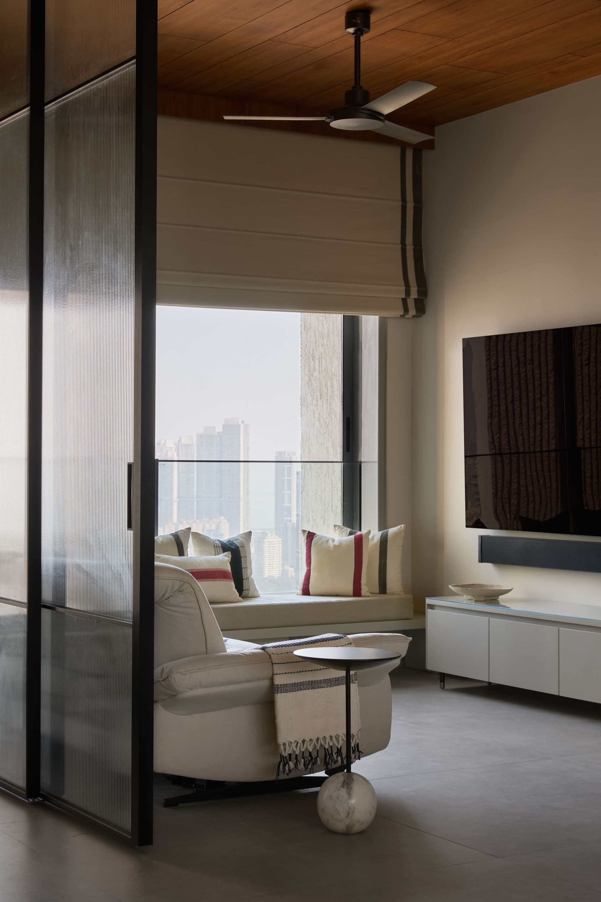 Perched on the 38th floor, with sweeping vistas of the Arabian Sea and Mumbai’s bustling skyline, 38, Nivasa is a masterful interplay of modernity and heritage. Designed by Quirk Studio for a couple in their 60s, this 2,500 sq. ft. residence reinterprets contemporary luxury through the lens of India Modern—a design language that seamlessly merges tradition with a bold, contemporary ethos.