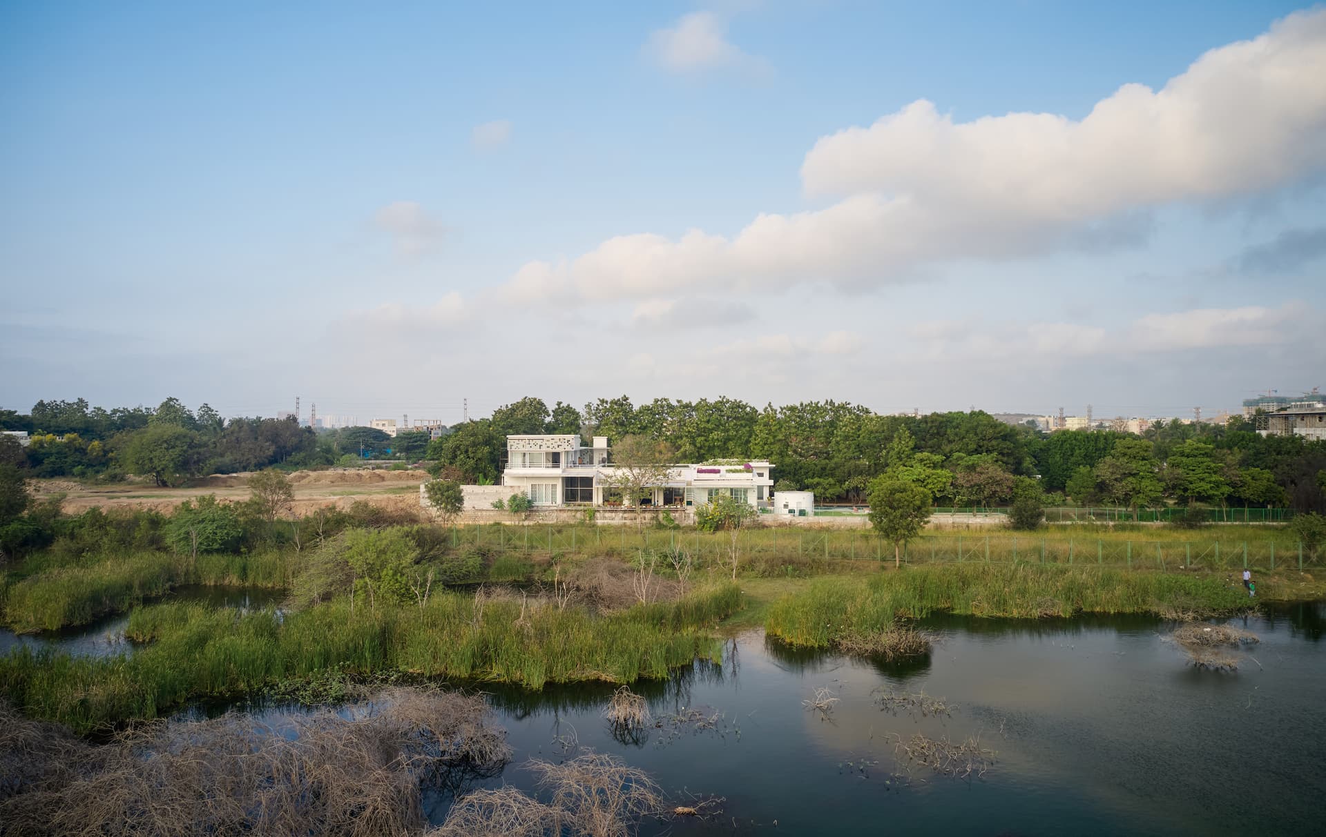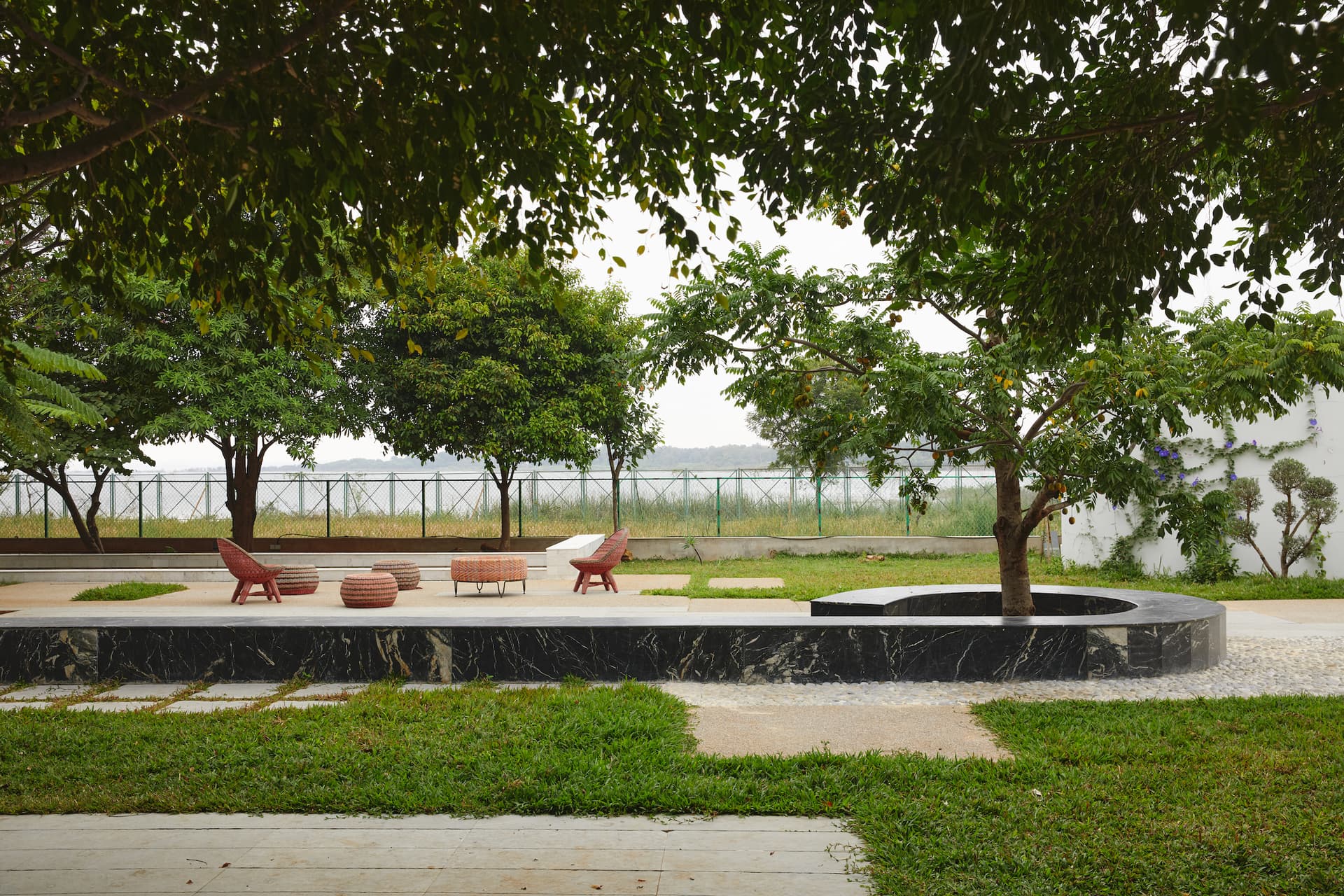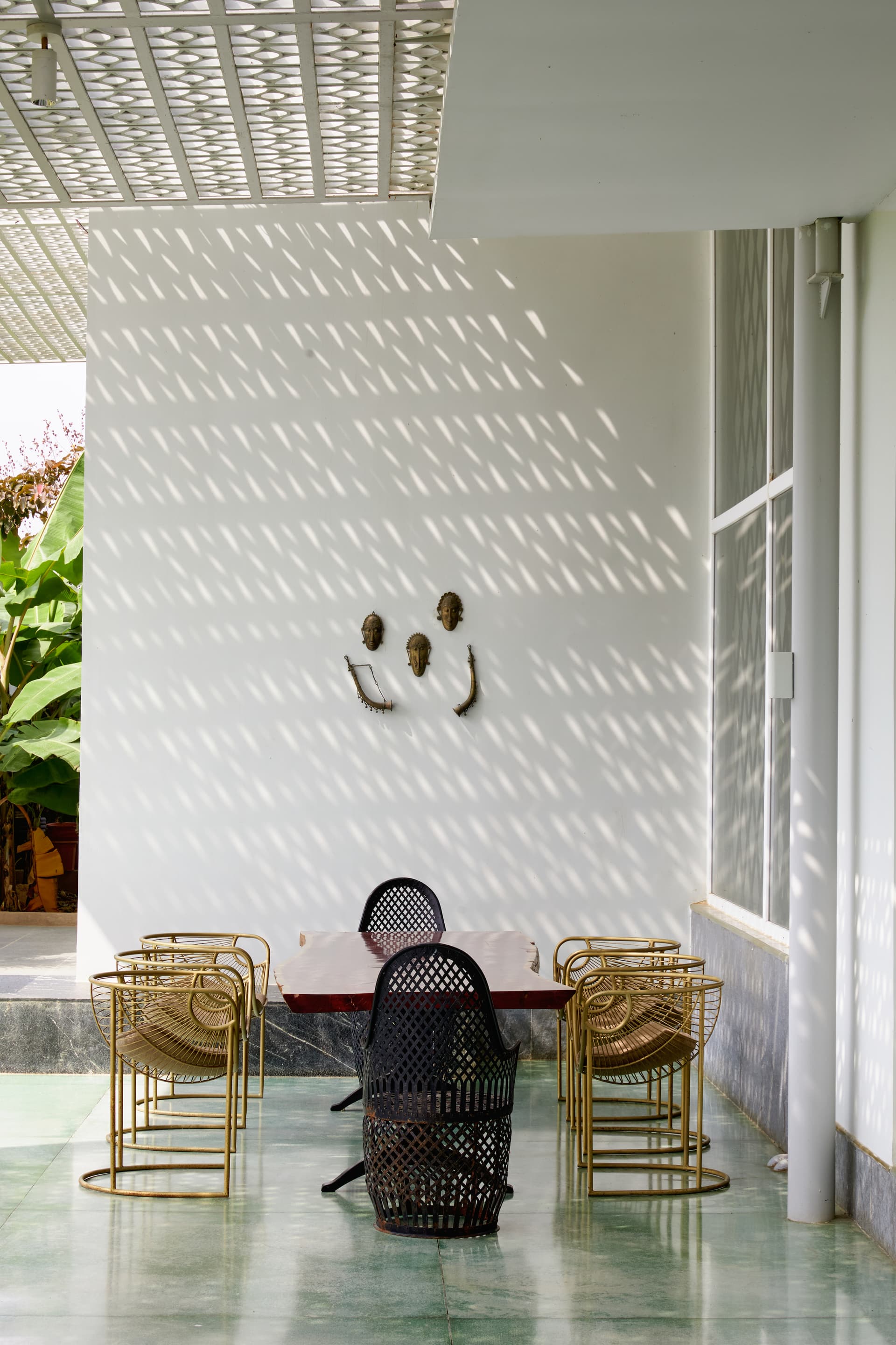 Spatial fluidity defines the architectural language of the home, where boundaries between the interior and exterior dissolve into a seamless continuum. The dining deck, extending towards the water’s edge, appears to levitate above the shimmering surface, especially during the monsoons when the landscape transforms into an ethereal dreamscape.