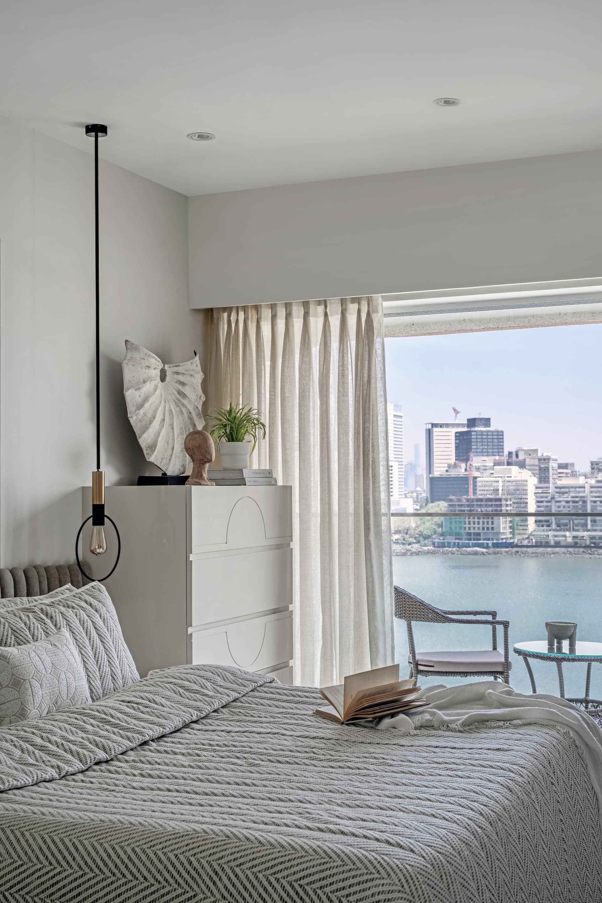 Nestled in the heart of Mumbai’s bustling Cuffe Parade, ‘Tidal Serenity’ by Niharika Saraf of Polka House reimagines coastal living. This serene sanctuary seamlessly blends architectural ingenuity with the calming essence of the sea. With panoramic ocean views as its backdrop, the residence epitomizes the harmonious coexistence of nature and design, crafting an inviting, light-filled retreat for a middle-aged couple whose children frequently visit. Through a thoughtful transformation, Saraf creates not merely a home but a haven that celebrates connection, tranquility, and understated luxury.