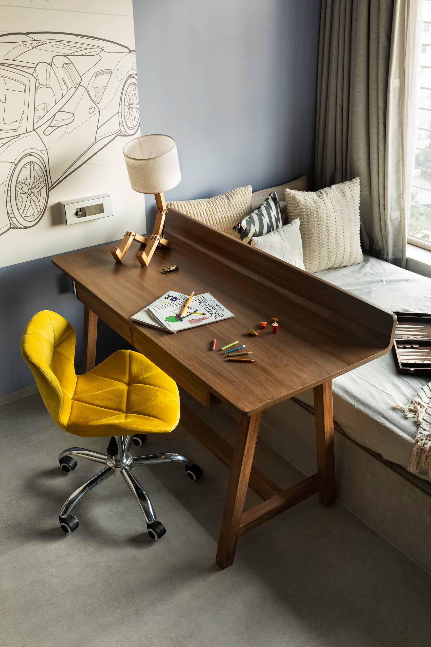 The kid’s bedroom here is a vibrant, playful space that reflects the boundless energy and imagination of its young occupant. The design team understood the importance of creating a room that not only meets the child’s current needs but also has the flexibility to grow and evolve over time. This was achieved through the use of a custom football-themed backdrop, a nod to the child’s passion for the sport. The vibrant colours and dynamic design infuse the space with a sense of fun and energy, making it a place where the child can play, learn, and dream.