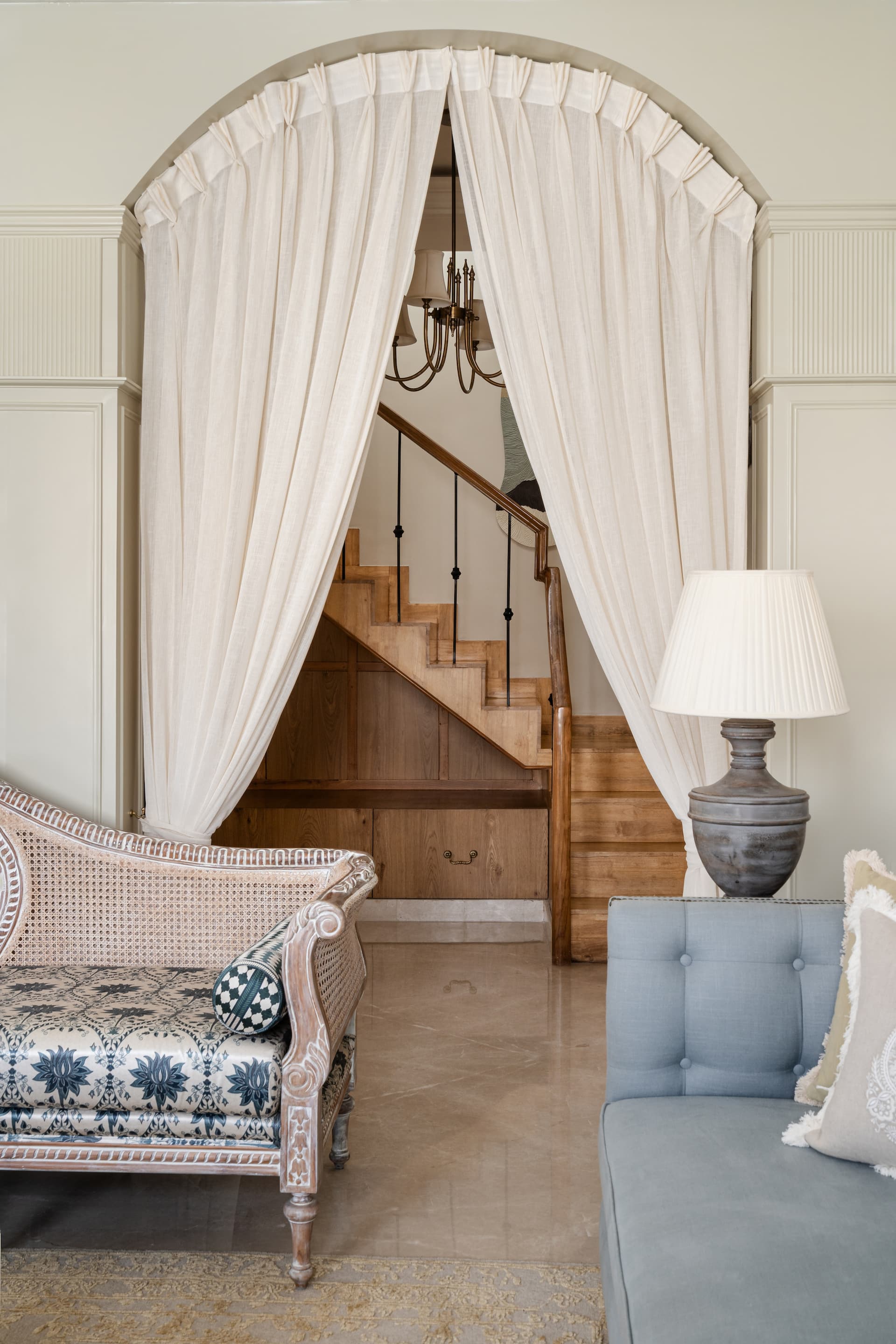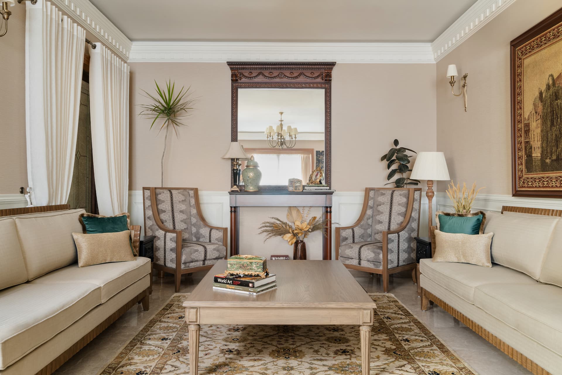 Nestled in an affluent neighbourhood in Noida, ‘The Lawyerly Abode’, designed by Nishtha Duggal and Rohan Gera of The Concreate Story stands as an ode to timeless elegance and design. This 15,000-square-foot home, divided into three floors with a basement and terrace, is a melange of French colonial and Georgian aesthetics, reflecting the distinguished taste of its senior-most resident; a venerable lawyer. Each floor of this residence tells a unique story, capturing the essence of its inhabitants’ love for travel, art, and heritage.