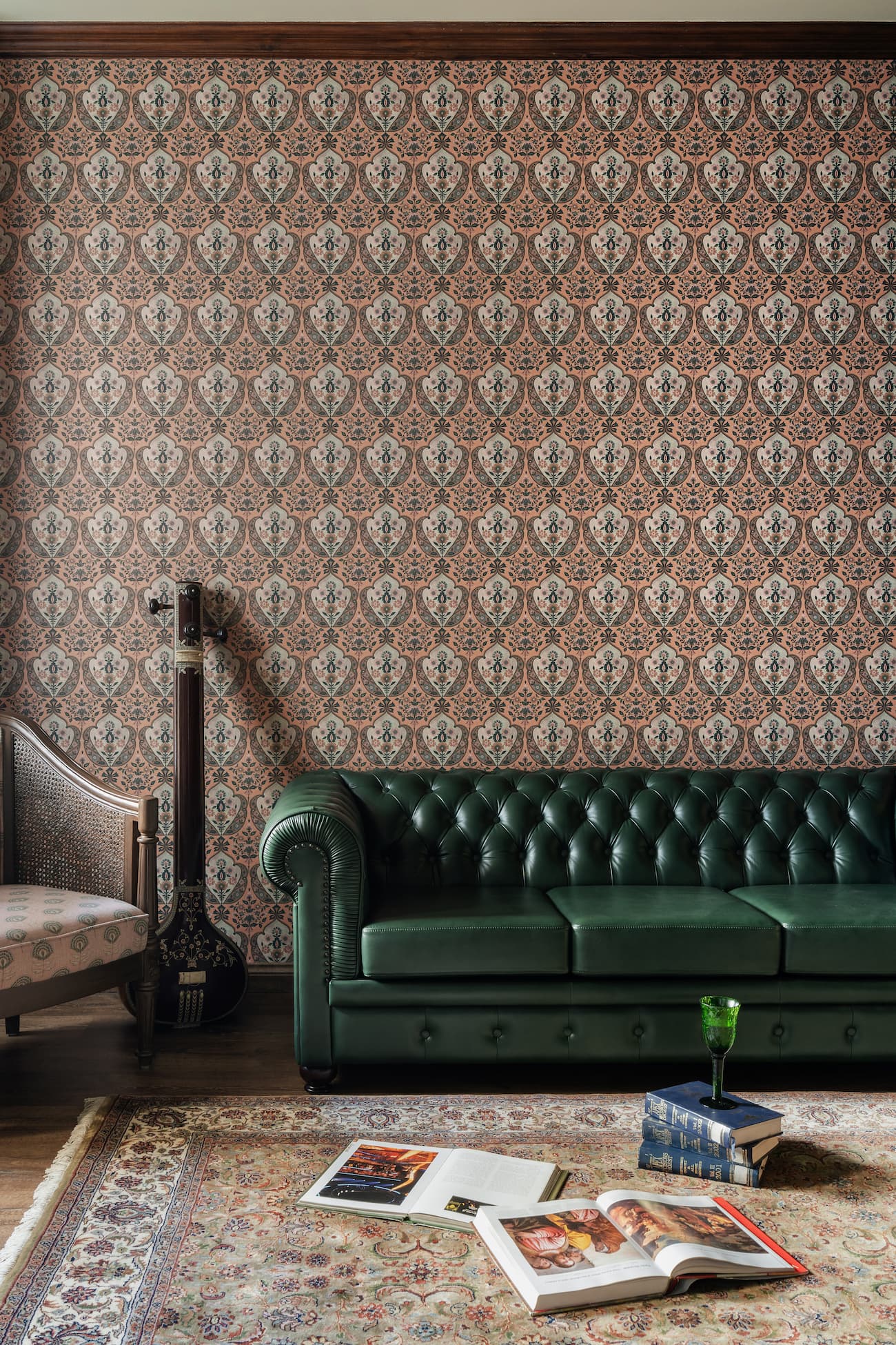 Entering the drawing room, one is immediately drawn to a magnificent French tapestry, an artefact from the family’s travels, which serves as the room’s pièce de résistance. Surrounding this piece, the room’s design incorporates rich, dark teak and oak woods, imbuing the space with a sense of regality. The bespoke black cabinet, crafted by the in-house team, boasts a shadowed polish effect, showcasing meticulous craftsmanship and ensuring that every element contributes to the overall aesthetic harmony.