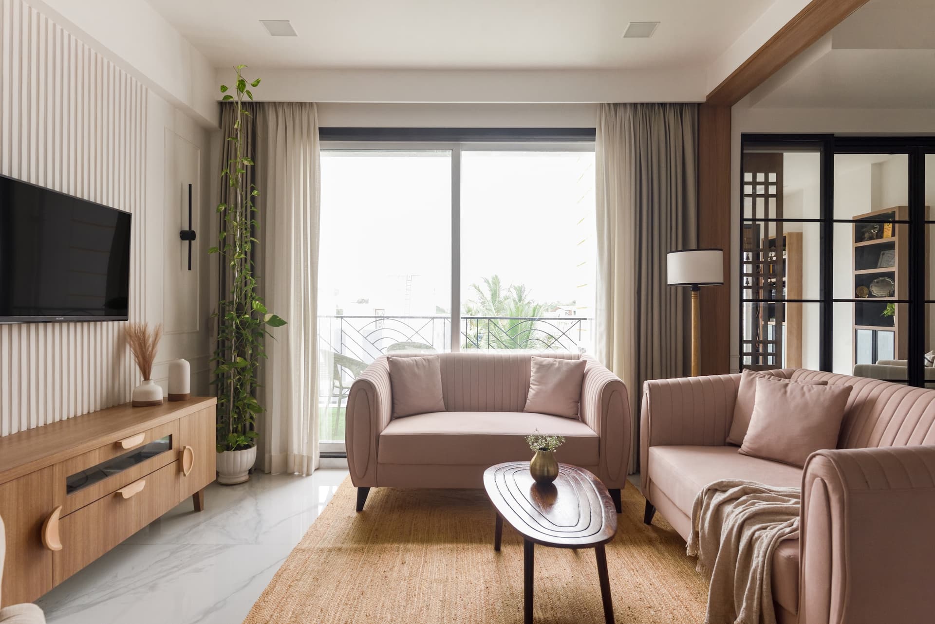 From the outset, D+U Architects approached the challenge of this residence with a keen eye for detail and a deep understanding of the client’s desires. The apartment, surrounded by the imposing mountains of Palghar, initially struggled with limited natural light. The design team’s solution was both strategic and poetic: by removing a common wall between the living room and an adjacent bedroom, they introduced an expansive sense of openness and light. This design intervention not only maximised the flow of natural light but also enhanced spatial continuity, embracing the Japandi ethos of functional simplicity and unobtrusive elegance.