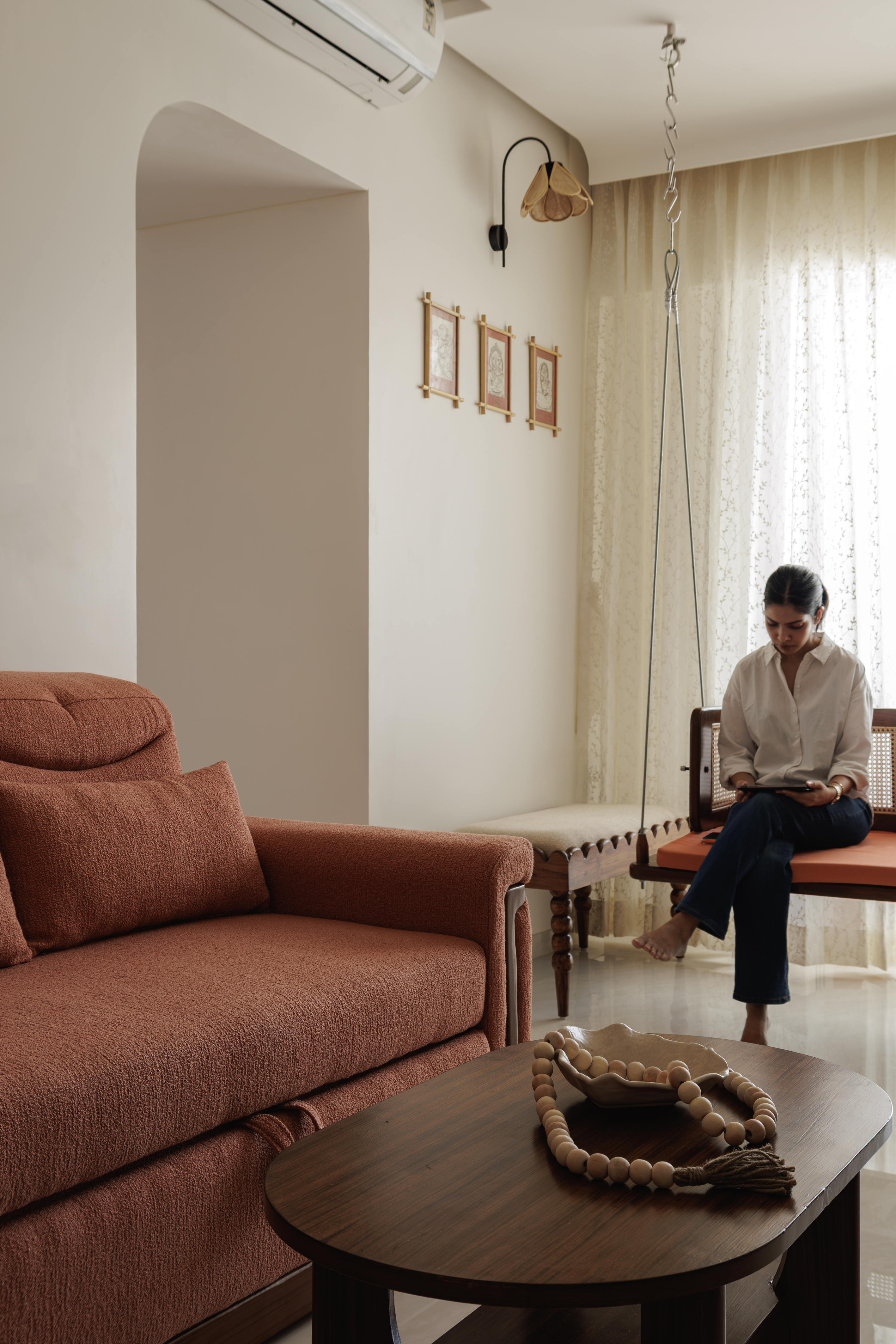 Asakta is a 770 sq. ft. apartment in Kanjurmarg, Mumbai, envisioned as a quiet yet expressive home that bridges contemporary living with deeply rooted Indian traditions. Designed by Insidestory Studio, the project reflects a thoughtful approach to compact urban living, where restraint, warmth, and craftsmanship take precedence over excess. Rather than leaning into overt nostalgia, the design draws from familiar cultural references and reinterprets them through a clean, modern vocabulary, resulting in a home that feels timeless, personal, and effortlessly liveable.