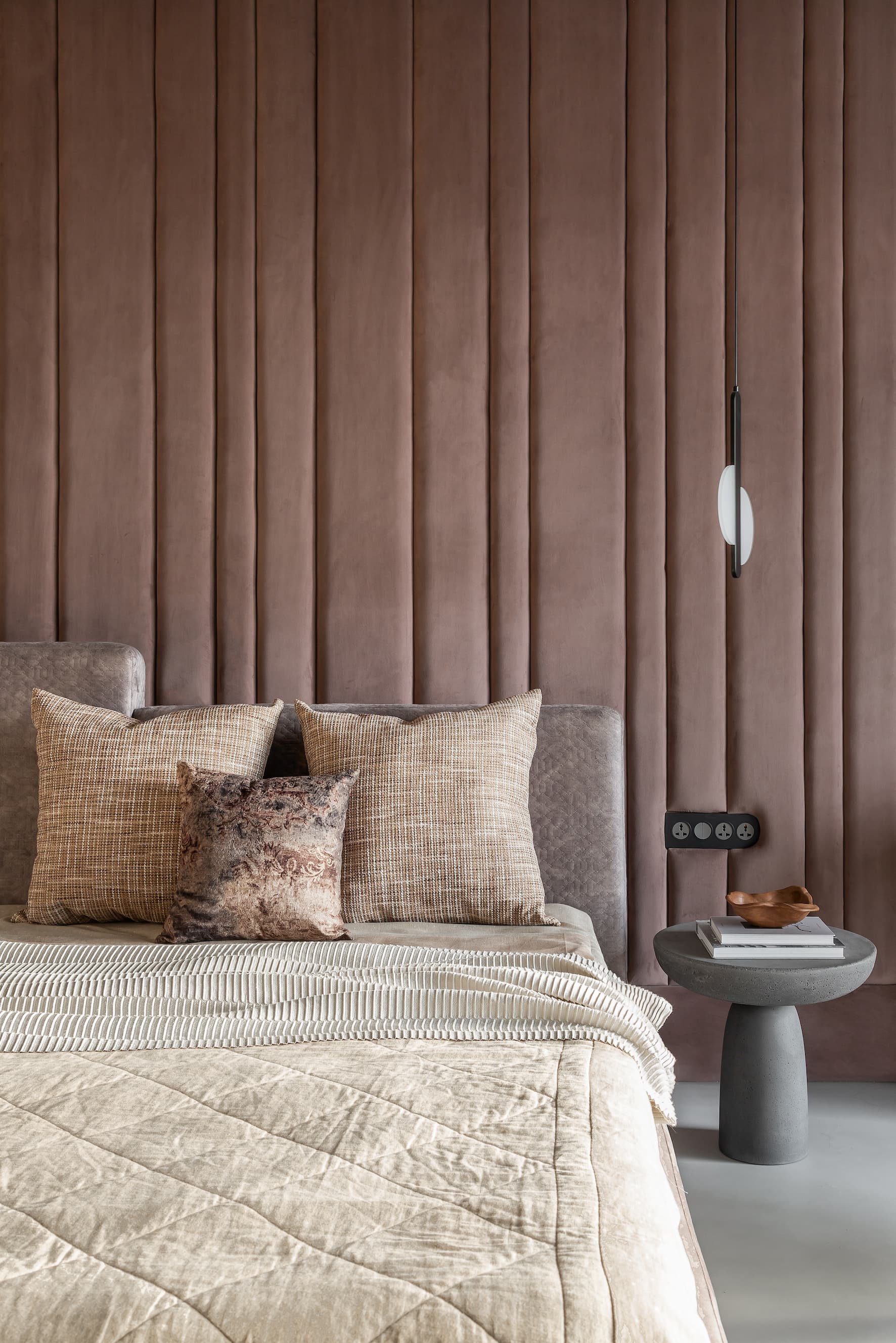 Beyond the shared spaces, the home continues its narrative of thoughtful design. The master bedroom is a quiet sanctuary, defined by soft furnishings, diffused lighting, and textural layers that invite comfort. Here, the design is about withdrawal—a space that lets its inhabitants rest, reflect, and reconnect.