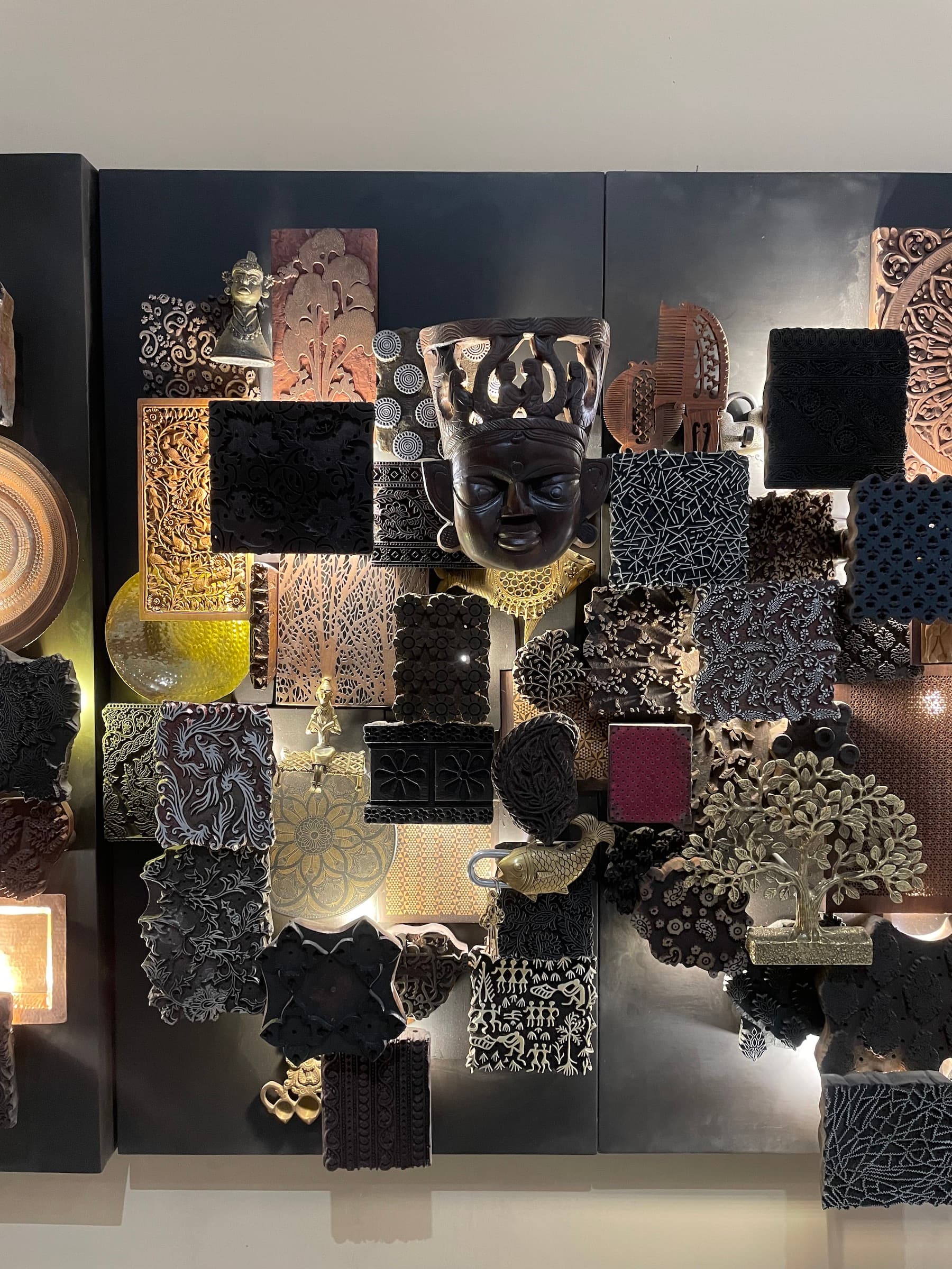 The Samrasta installation combines wood carvings with artefacts and daily objects in a variety of metal crafts. It is not just represented by unifying diverse wooden blocks. But it is interspersed with metal crafts from different corners of India.