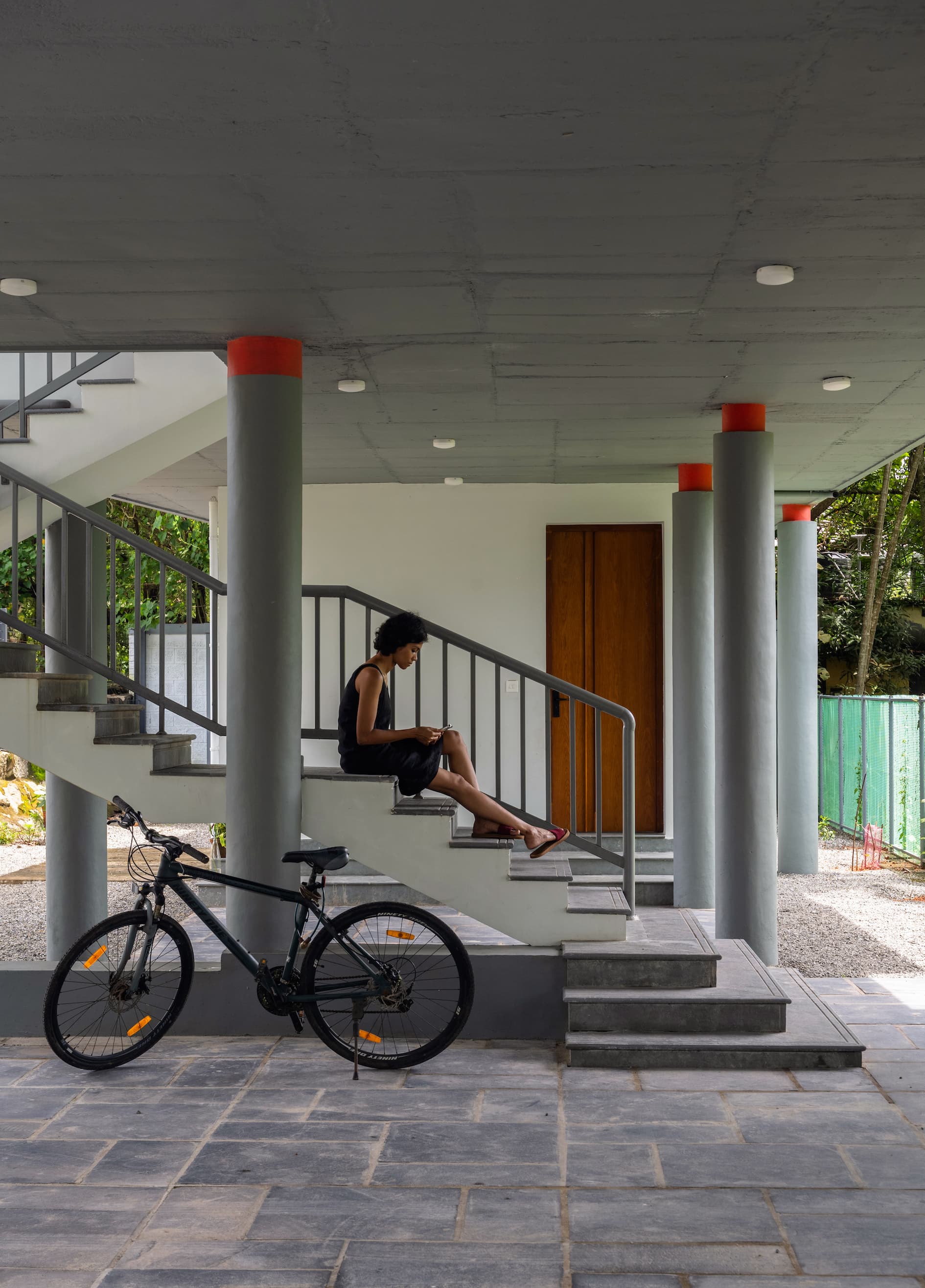 Nestled along the tranquil shores of Vypin Beach in Kochi, Kerala, this 2,300-square-foot holiday retreat is a poetic expression of minimalist architecture meeting coastal serenity. Designed by the innovative minds at From Around Here, the home sits on a sprawling 14,300-square-foot site, its linear form dictated by the narrow beachfront. Elevated gracefully on circular stilts, the structure rises above its surroundings, offering uninterrupted views of the Arabian Sea while harmonizing with the natural landscape.