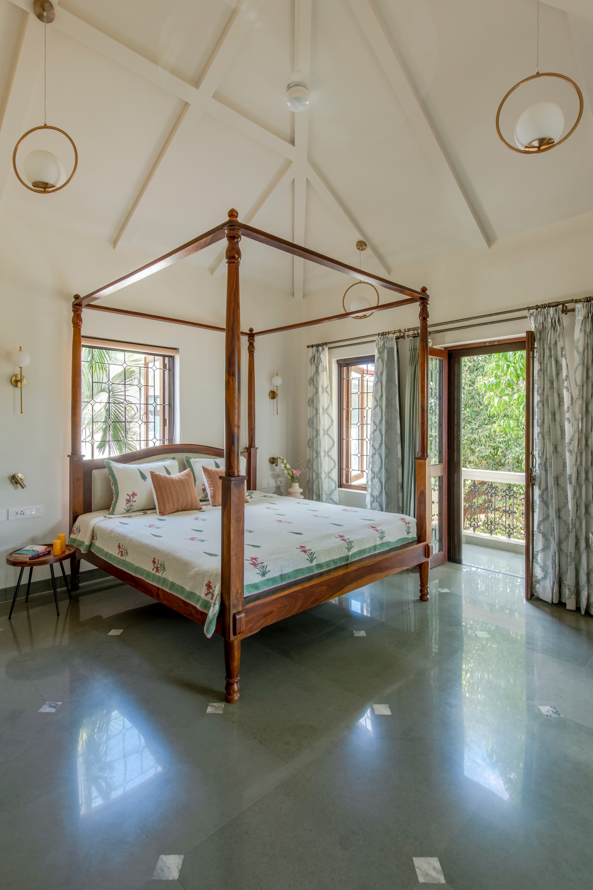 The villa’s transformation was a collaborative effort, with civil work, carpentry, painting, and polishing teams hailing from Ahmedabad, while local agencies from Goa handled steel fabrication, electrical, and plumbing work. Frequent site visits facilitated seamless coordination between diverse work cultures, culminating in a six-month project timeline.