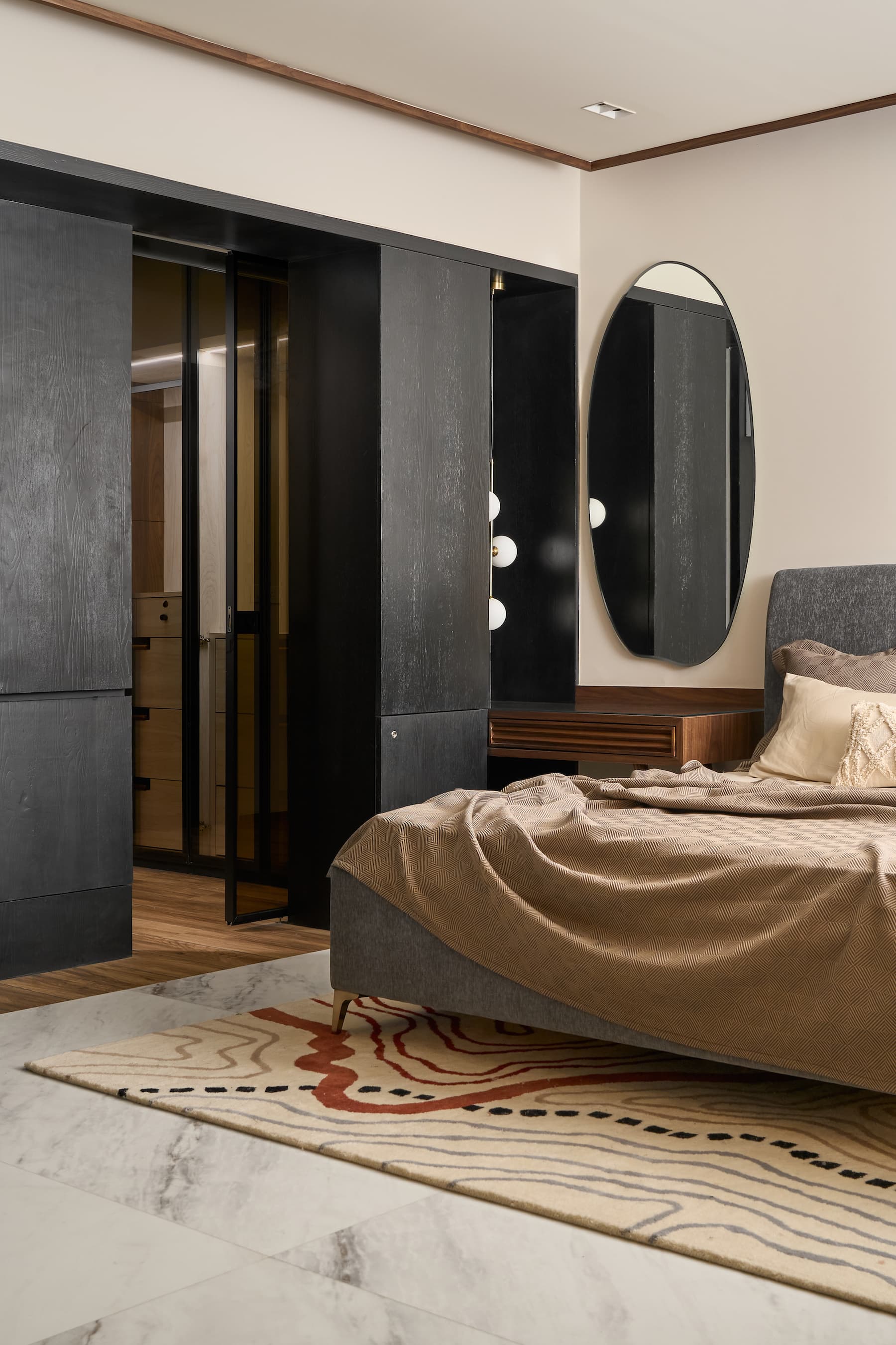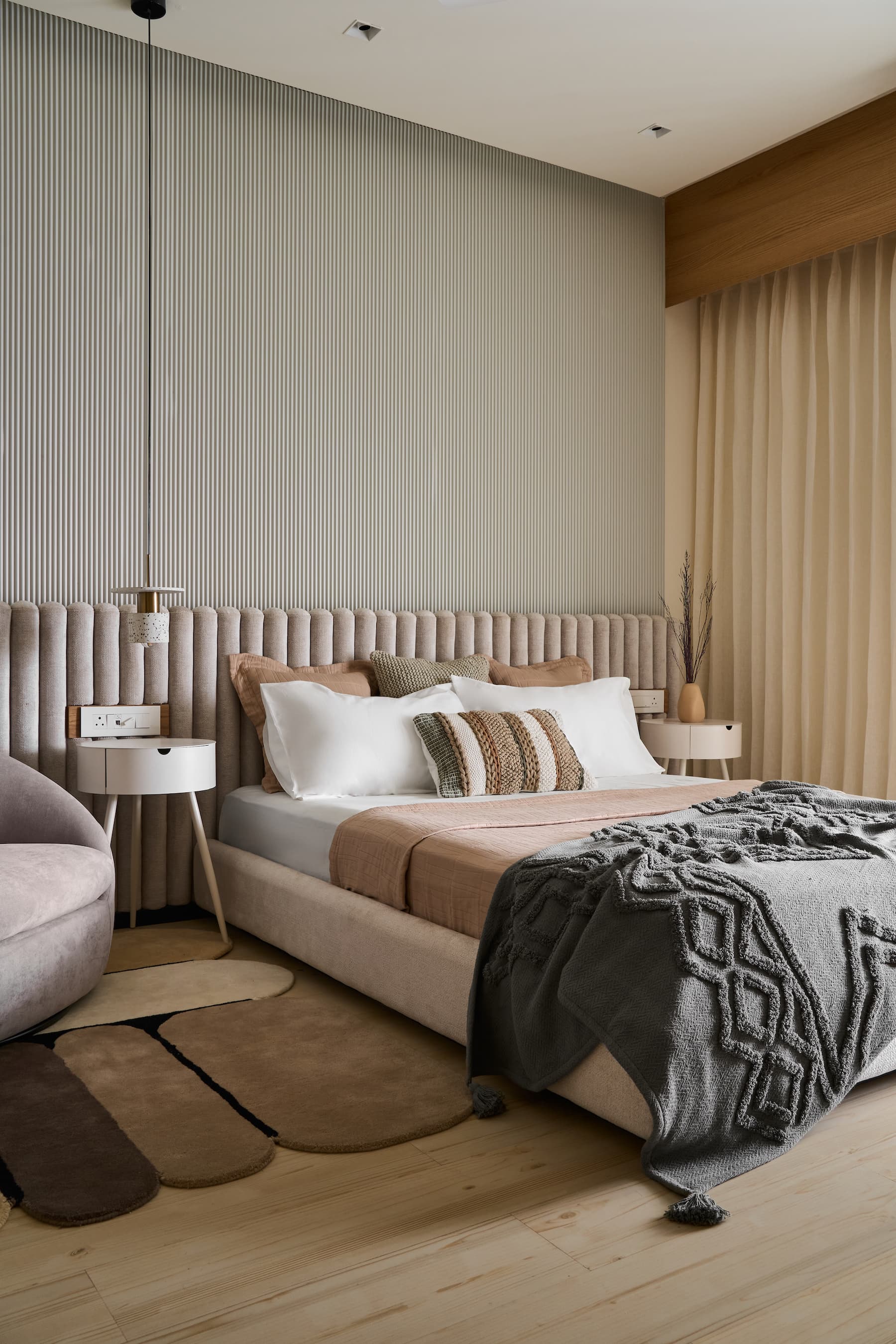 The private spaces reflect an intricate level of design consideration, with each bedroom thoughtfully crafted to embody the distinct personality and preferences of its occupants. Here, the design transforms from the collective energy of the shared living spaces into personal sanctuaries, where calm and individual expression take center stage.