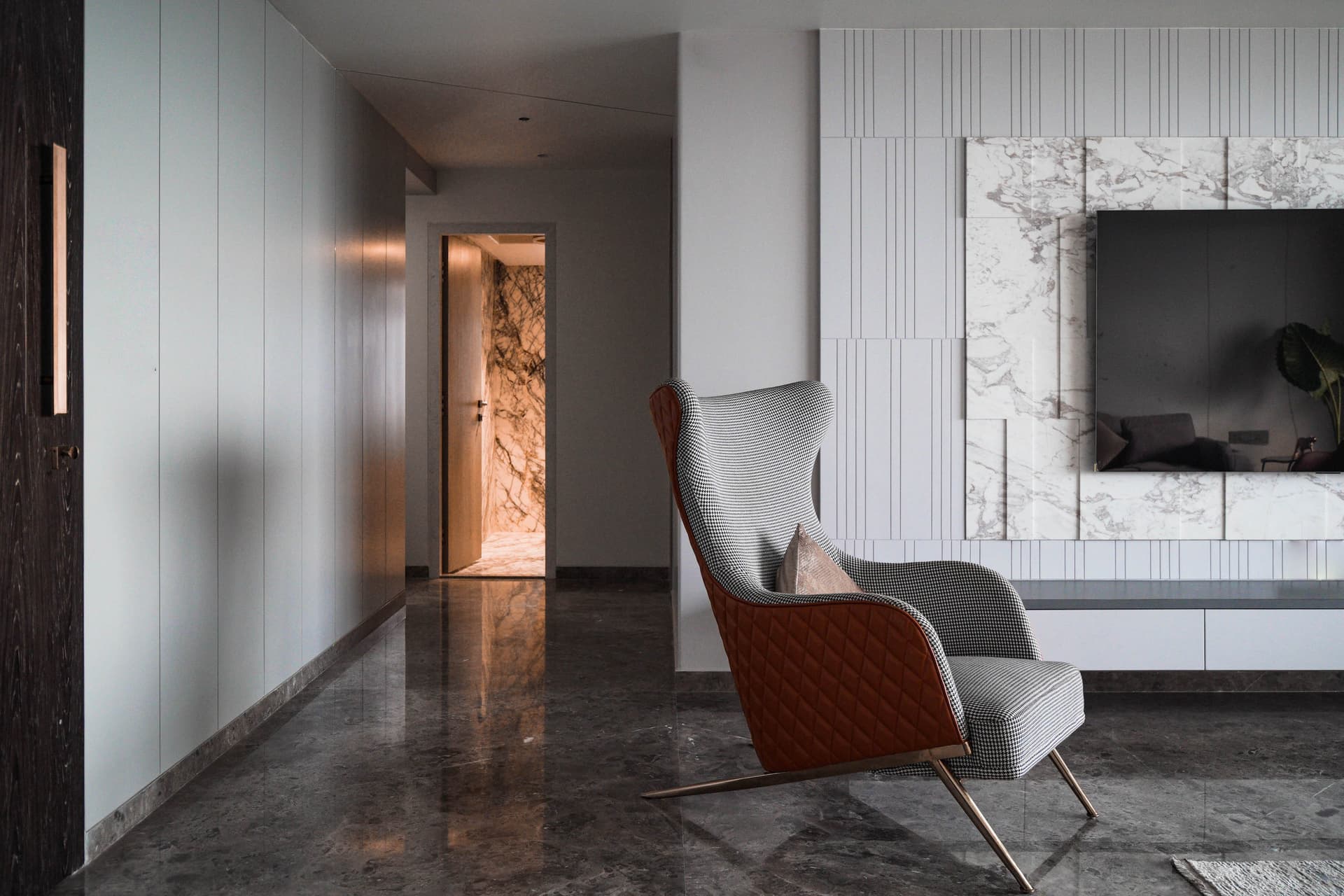 Throughout the apartment, the attention to detail is evident, with carefully crafted elements that create a sophisticated and serene living environment. Meticulously designed light fixtures add a touch of glamour and elegance to the space, while carefully chosen accessories offer a sense of warmth and personality.