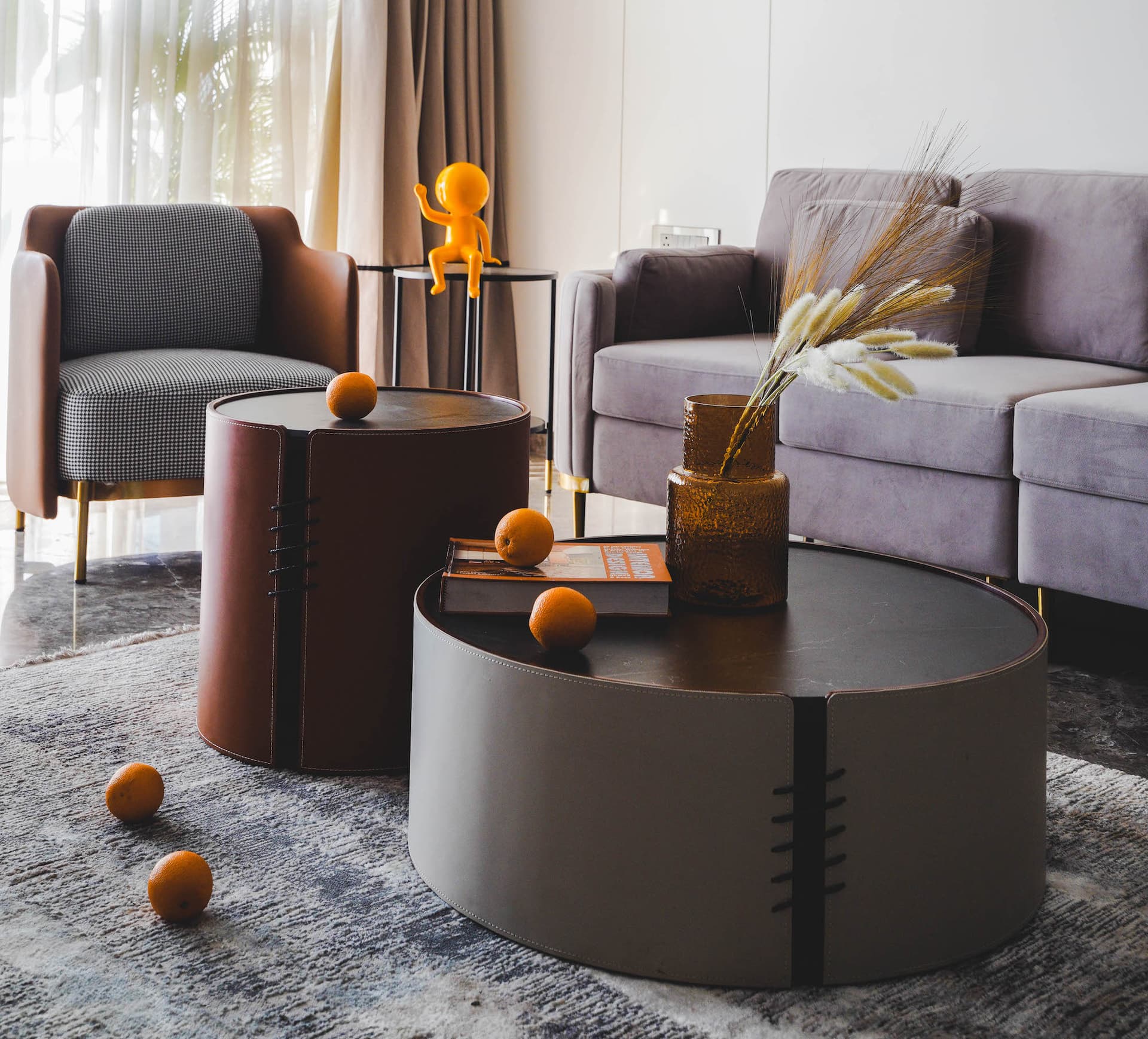 From the moment you step into the apartment, it’s clear that no detail has been overlooked. The expansive living area features a comfortable seating arrangement, with plush sofas and armchairs arranged to take full advantage of the breathtaking views. A minimalist coffee table, offers a striking focal point in the room, while a soft rug in muted tones grounds the space and adds warmth.