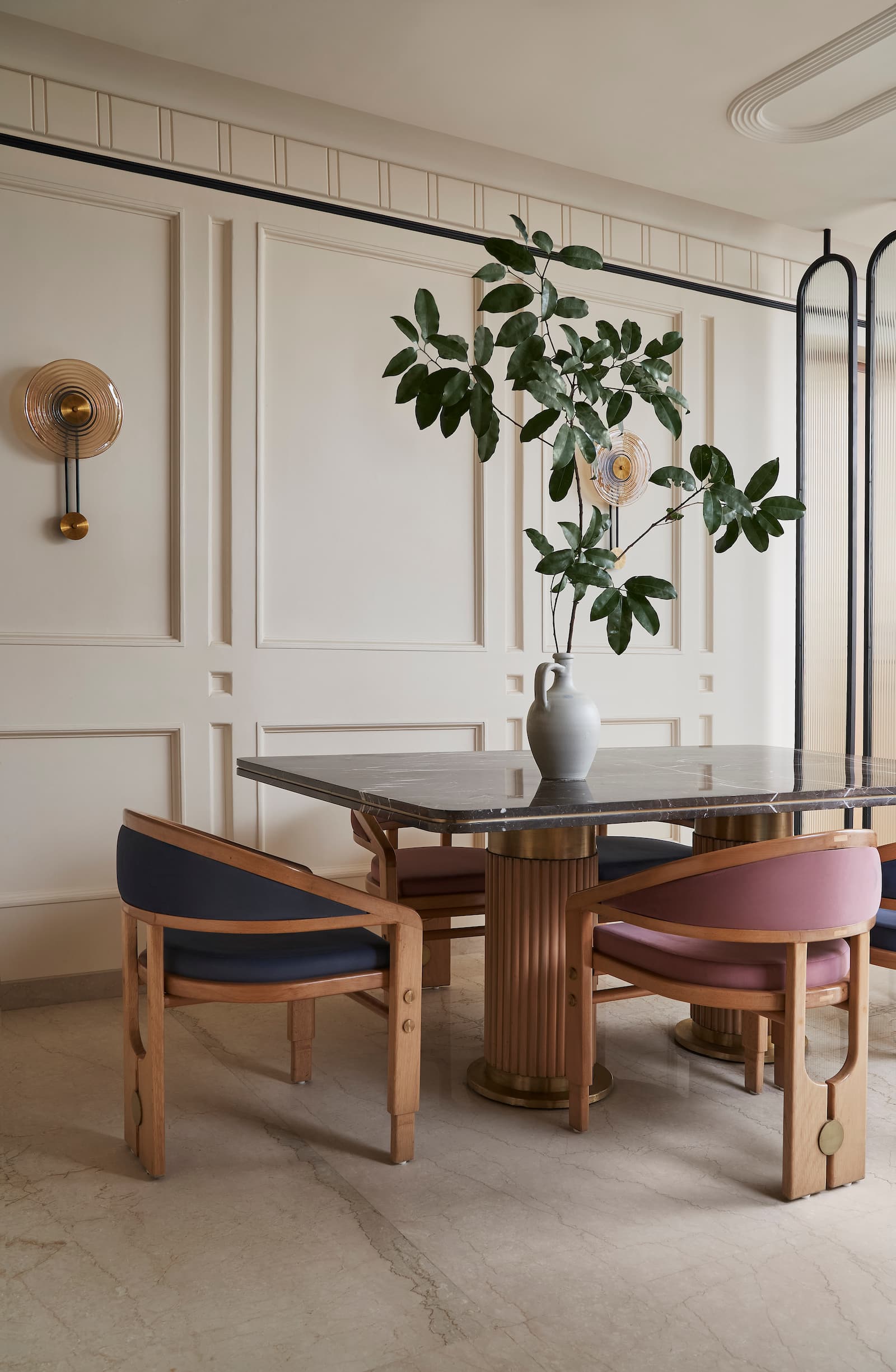 Blending traditional elements with modern sensibilities, Romit Savla, Founder of Soch Design Studio’s Virali Villa speaks volumes about elegance and sophistication without sacrificing the comfort and personal touch that comes from dedicating each space to its respective inhabitant. Whether it’s sophisticated style or relaxed elegance, this house has it all! Taking into account family members’ individual needs, preferences and lifestyle habits, each space in this home is carefully crafted to reflect the distinct personality of its respective inhabitant.