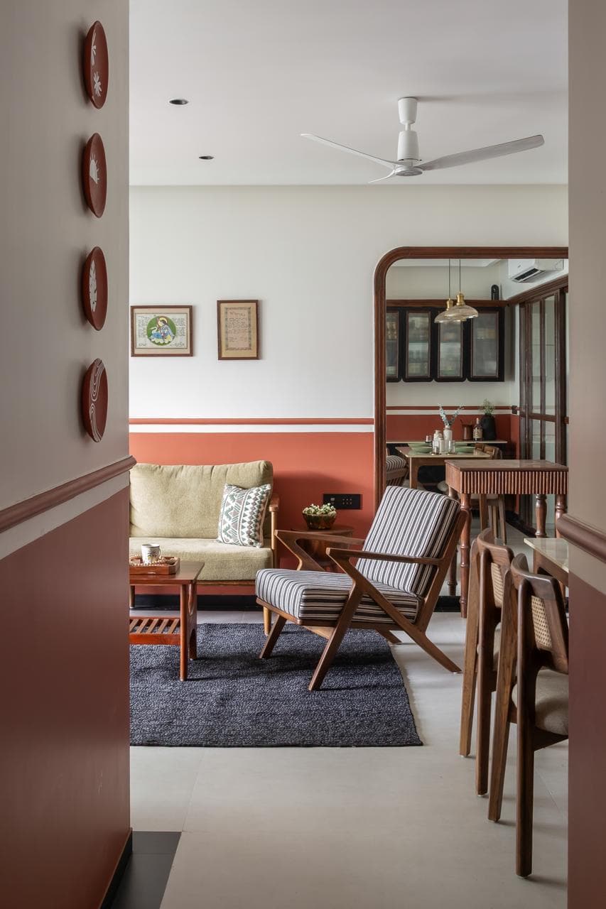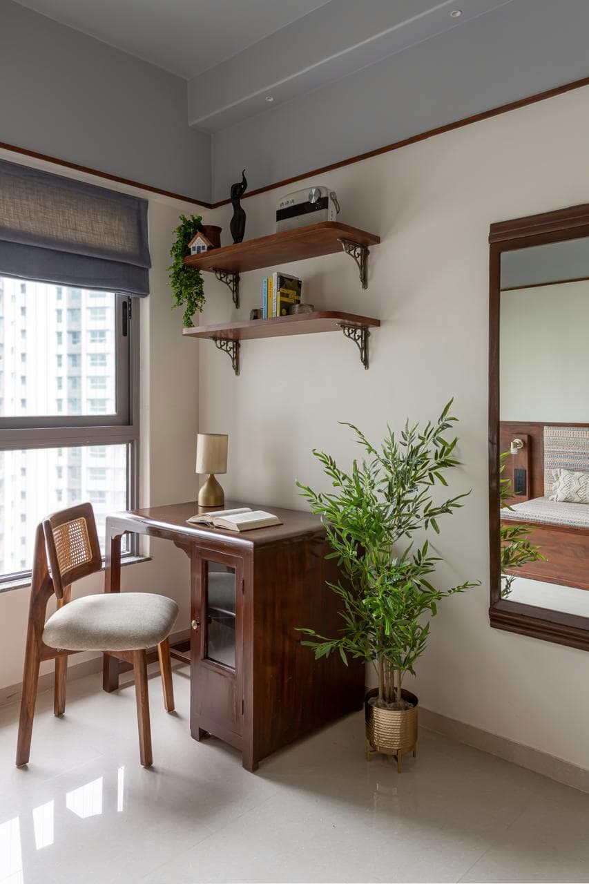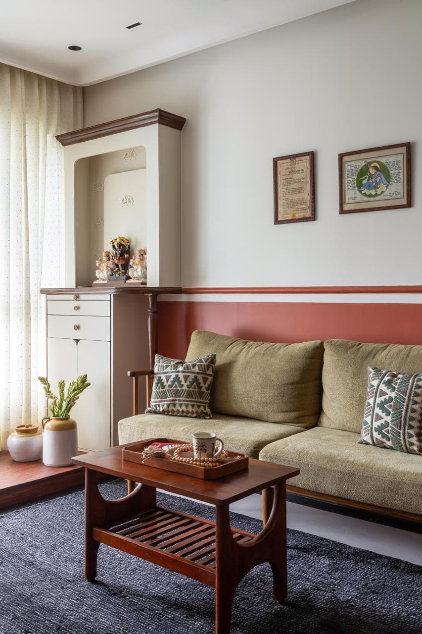 From the outset, the design intent was clear, to create a home that radiates warmth while resonating with the family’s cultural heritage. The architects, Ar. Disha Nayar and Ar. Umal Patil, embraced this vision with a restrained yet soulful aesthetic. Every inch of Ulka speaks of thoughtful curation: the presence of athungi tiles, classic wooden mouldings, and brass accents bring depth and authenticity to a modern layout. The home celebrates nostalgia without losing touch with the now, bridging old-world charm and present-day simplicity.