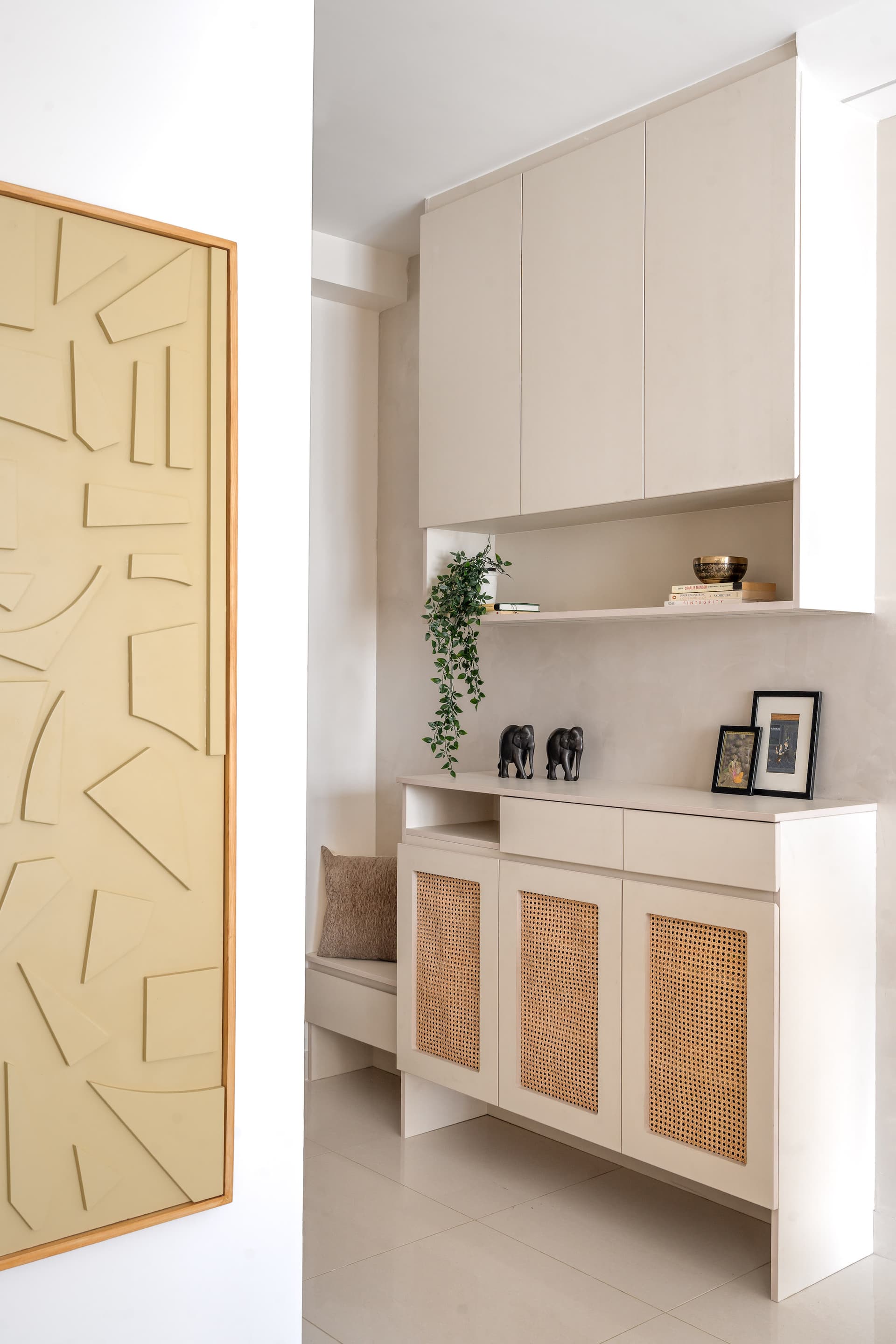 Nestled within the prestigious Shapoorji Pallonji Parkwest in Bangalore, the Cane & Concrete project by Vedika Modi and Aman Thakur, Principal Architects at Aantrik, is a testament to the art of crafting contemporary living spaces that blend sophistication with serenity. Completed in 2024, this apartment interior design reflects the studio’s commitment to creating cohesive environments where every detail resonates with thoughtful elegance.