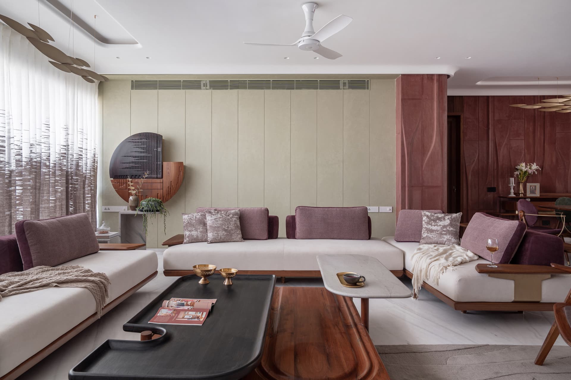 Perched within the bustling urban fabric of Surat, Gujarat, lies a tranquil and captivating residential project designed and executed by Interior Designer Minal Jariwala, principal designer at Ataha Design Synergy. Sprawled across 5,000 sq. ft., this project redefines chic luxury through a celebration of fine craftsmanship and curated spaces that truly reflect the rooted ethos of the dwellers, making it their ‘abode’. Seamlessly weaving contemporary design with the subtle allure of urban living, this 5BHK residence embodies the client’s aspiration for unembellished aesthetics, offering a serene retreat within the growing cityscape. At the onset of this creative endeavour, the design is shaped through meticulous exploration, adaptation, and evolution of the resident’s desires and needs, all while envisioning the final outcome. The design approach embraced flexibility, continually evolving towards details, finesse, and sharp design vision. With a blend of curvilinear and stark geometric forms, the designer has celebrated organic premium materials, from Burma teak wood to brass, reflecting both explicit and subtle luxury.