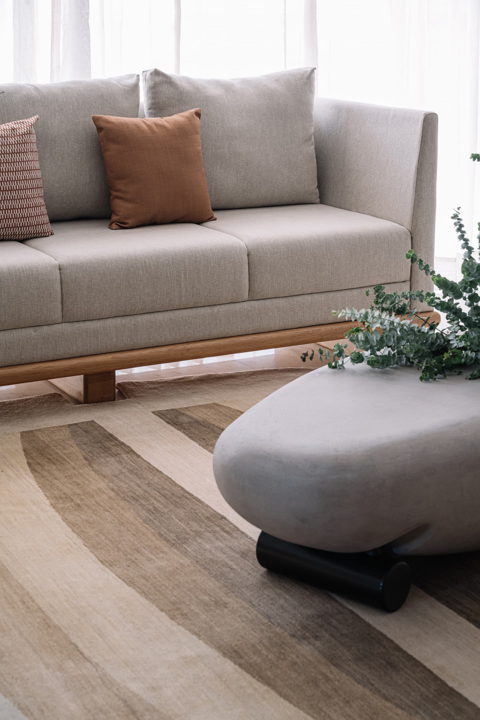 As you saunter further, the graceful flooring reflects an eccentric yet connecting fluidity and emerges as the vital defining feature of the apartment. It follows a serene neutral palette throughout that is enhanced with nuances to dictate formal and informal space and accent colours to create subtle identities in personal spaces it helps anchor the space.