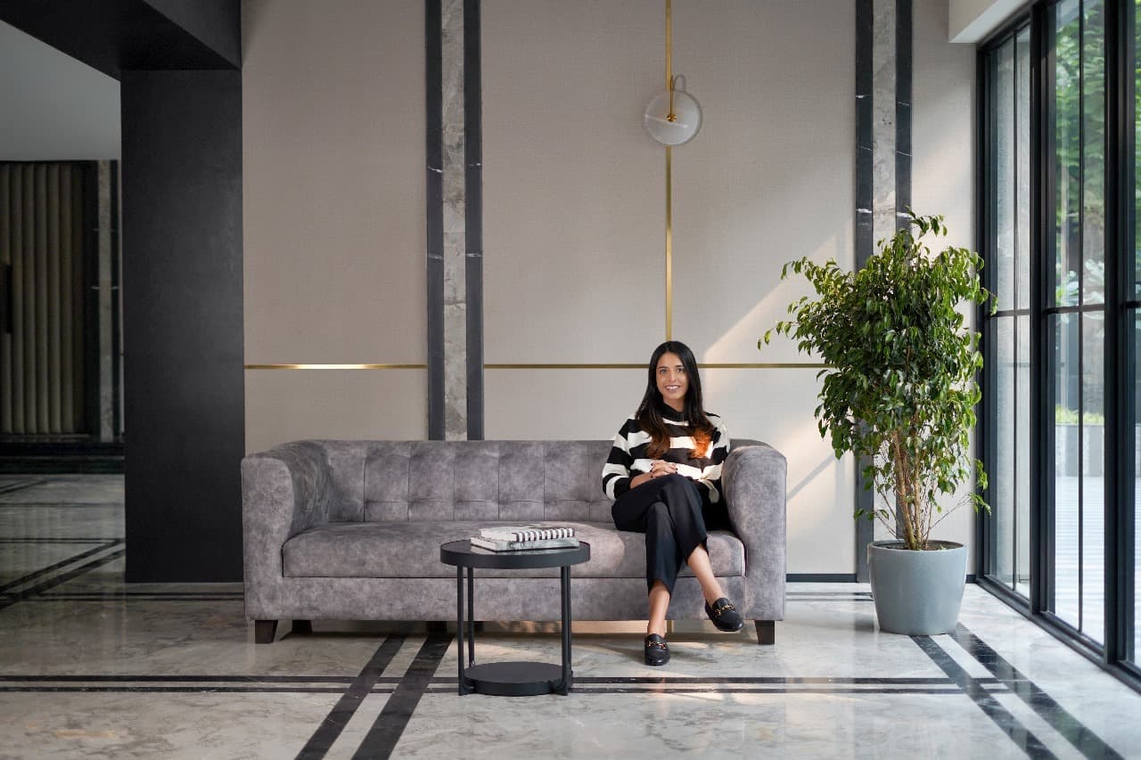 Framing panoramic views of the Maximum City, this home occupies the 12th level of a skyscraper in Worli. “What made the apartment’s blueprint unique was that each room was encased within one wall of glass. It almost felt like we could dissolve a physical dimension, allowing the spaces to feel open-hearted and ample in their expanse, a perception that unshackles itself from the numerical square footage,” illustrates Aashni.